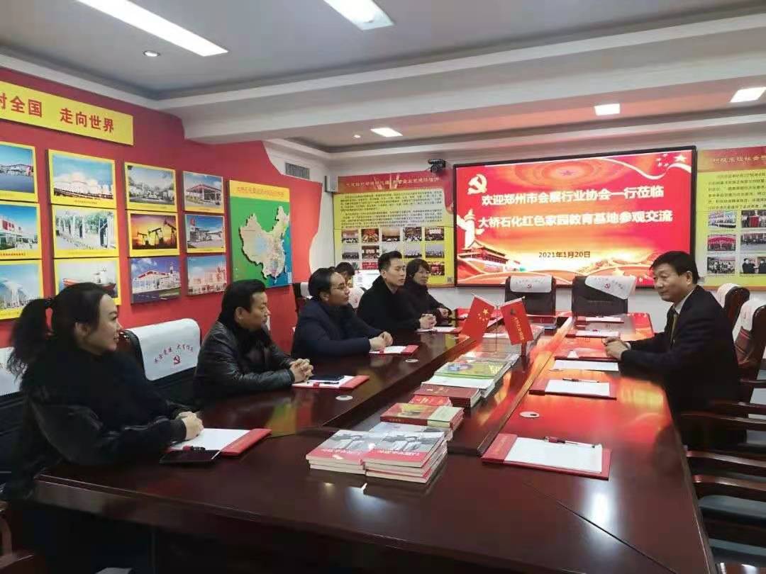 1月20日下午,鄭州天天會展服務有限公司副總經(jīng)理、鄭州會展行業(yè)協(xié)會常務副會長夏勝齊隨同鄭州會展行業(yè)協(xié)會支部委員會參觀了大橋石化紅色家園。中共鄭州會展行業(yè)協(xié)會黨支部書記李秉禹、副書記邵翠平、鄭州會展行業(yè)協(xié)會秘書長劉亞娜、鄭州會展行業(yè)協(xié)會常務副會長馬玉群等人共同參加了此次學習。河南大橋石化集團黨委副書記尤連平、大橋石化黨委副主任申建黨百忙之中,熱情接待并全程陪同。